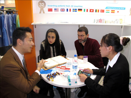 参展两天已收到有意向的外商名片300多张,产品预期的受到欢迎,特别是相约来展位的客户沙特、土耳其、意大利等客户已明确近期下单,这几个国家出现多个经销商争夺经营权局面,巴西、阿根廷、英国、德国等客户就全面合作进行深度沟通。从许多客户对公司专利产品的载体包装特点的认可,表示“创洁”产品的包装载体技术将是未来的潮流和趋势,合作意向十分强烈,展位的火暴场面与附近冷清的展位成鲜明对比,成为6号展馆一朵奇葩,本次展会的承办方也表达震惊“多年未见这样火的参展商”,承诺今后要优先考虑公司的展位选择与安排。